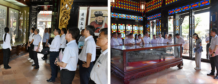 会后,在讲解员的带领下,与会人员一行参观宝墨园廉洁文化教育基地。