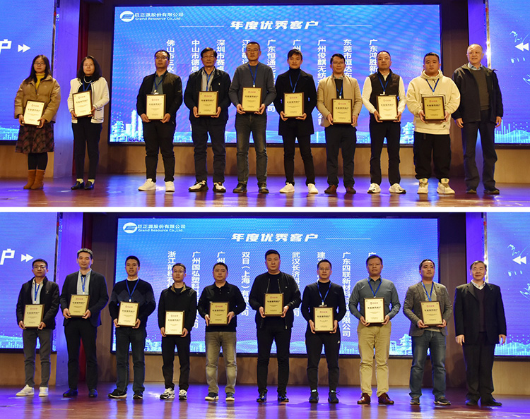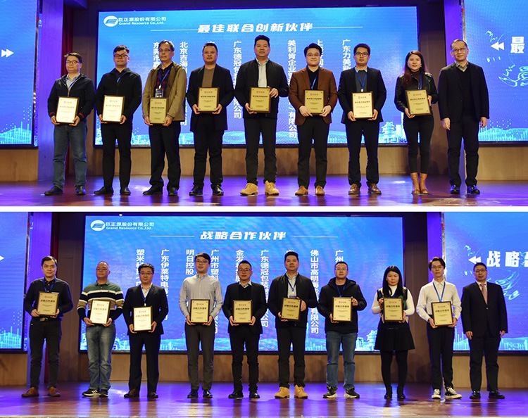 最后,大会向72家合作伙伴颁发年度战略合作伙伴、优秀客户、最佳联合创新伙伴等奖项。广物控股集团领导、巨正源领导班子为获奖客户颁发牌匾。