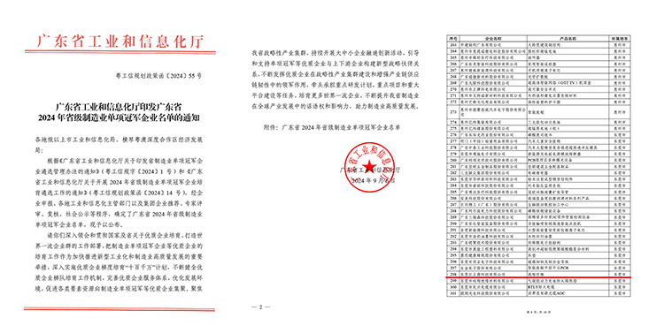 近日,广东省工业和信息化厅印发广东省2024年省级制造业单项冠军企业名单。巨正源下属科技公司凭借领先的技术创新能力、强大的综合实力和卓越的产品质量,尤其是自主研发的“高熔纤维”产品极具技术先进性、质量可靠性和产业带动性等优势,成功获得“广东省级制造业单项冠军企业”称号。
