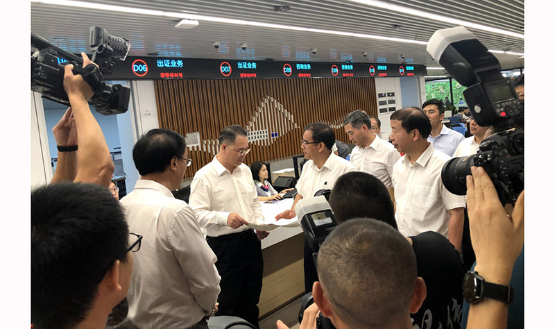 10月9日上午,东莞市民服务中心举行试运行启用仪式,市委书记梁维东、市长肖亚非到东莞市民服务中心巡馆。在市委书记梁维东、市长肖亚非等市领导的共同见证下,公司董事长曾一平现场领到了由东莞市市场监督管理局曹宇副局长颁发的营业执照(巨正源氢能源科技有限公司)。这也是市市场监督管理局在市民服务中心颁发的第一张企业证照。