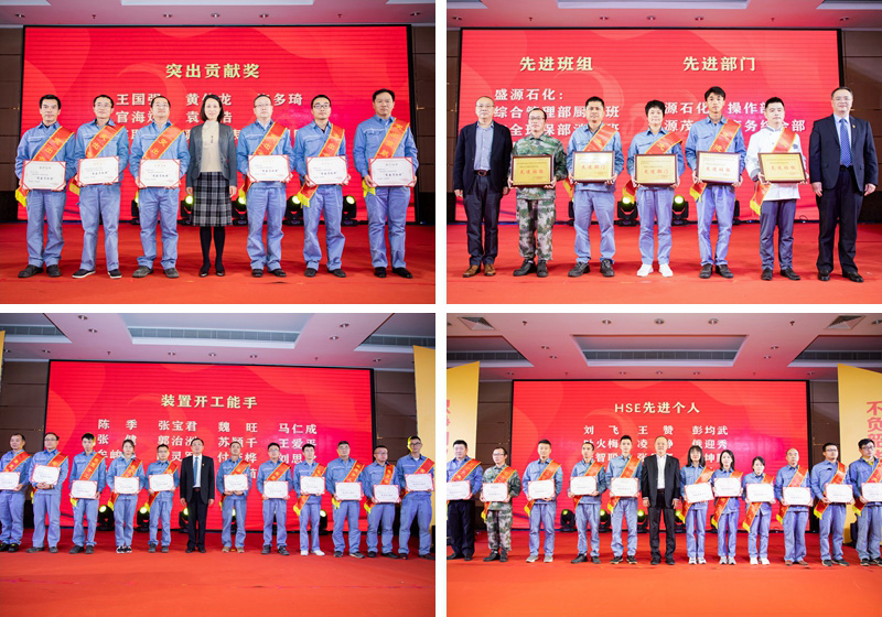 党总支书记张宝业宣读了公司2019年度先进集体和先进个人的表彰决定。李汉初副总裁宣读了聚丙烯项目建设、开工先进集体和先进个人的表彰决定。广物控股集团副总经理钟慧玲、巨正源公司领导班子为获表彰的先进集体和先进个人颁奖,感谢他们过去一年的努力拼搏,为公司的持续稳定发展、聚丙烯项目建设作出的积极贡献。