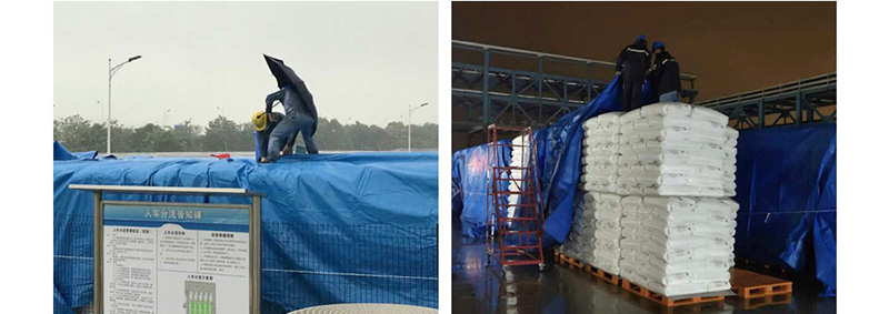 针对近期天气变幻莫测、时晴时雨的情况,青年战疫突击队采用“打游击”的方式进行移库工作,雨来我退,雨停我移。雨大我躲,雨小我出。2月13日晚,天空突然飘起了雨丝,部分刚转移出库的产品还未来得及盖上“雨衣”,青年战疫突击队成员冒雨迅速给转移出库的产品盖上防水帆布。随着下游企业陆续复工复产,这场“游击战”的胜利指日可待。