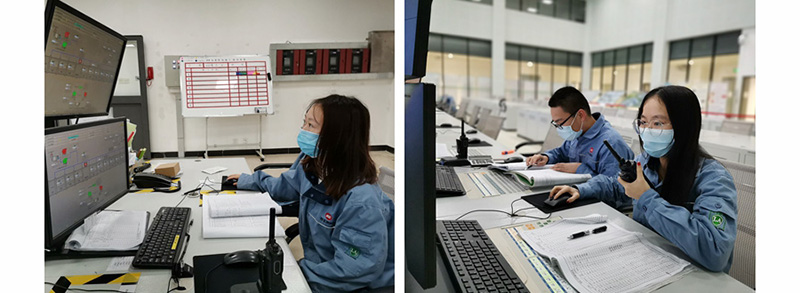 吴洁羽、朱秀琴、钟敏霞、曾琴是中控室聚丙烯装置内操员,负责控制1条生产线。春节期间,公司的2条生产线同时转产高熔指医用纤维料,生产人手紧缺,她们急公司所急,主动放弃轮休,支援兄弟班的内操,根据化验数据和产品质量不断摸索调准各个工艺参数,保障高熔指医用纤维料的稳定生产。在试用液体添加剂生产Y40L时,需要根据熔融指数实时调整过氧化物加入量,袁振彬主动请缨,承担每10~20分钟一次的样品送检,还有颜湘和张黛璐,聚丙烯装置7名女职工全部留厂过年,为公司迅速转产、稳产医用纤维料立了大功,是公司抗击疫情的“红色娘子军”。