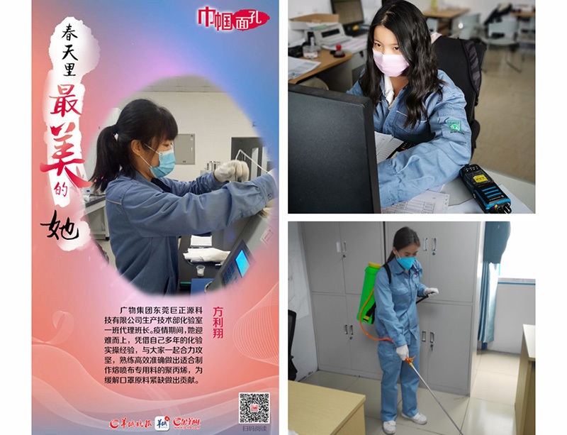 此外,还有小肩膀扛大重担、屡为公司疫情防控、项目建设建功的工程部外联室副主任闫荣,冲锋在前、为做好疫情防控和有序复工复产像陀螺一样忙不停的安全环保部唯一的女职工宾美琼等等。据统计,公司共有51名女职工参加疫情防控阻击战,其中28名倒班女职工,每一个女职工都是以厂为家,为公司在疫情期间“累计生产医用纤维料超3万吨,并以3吨的日产速度加紧生产熔喷布专用料供应市场”做出了应有的贡献。