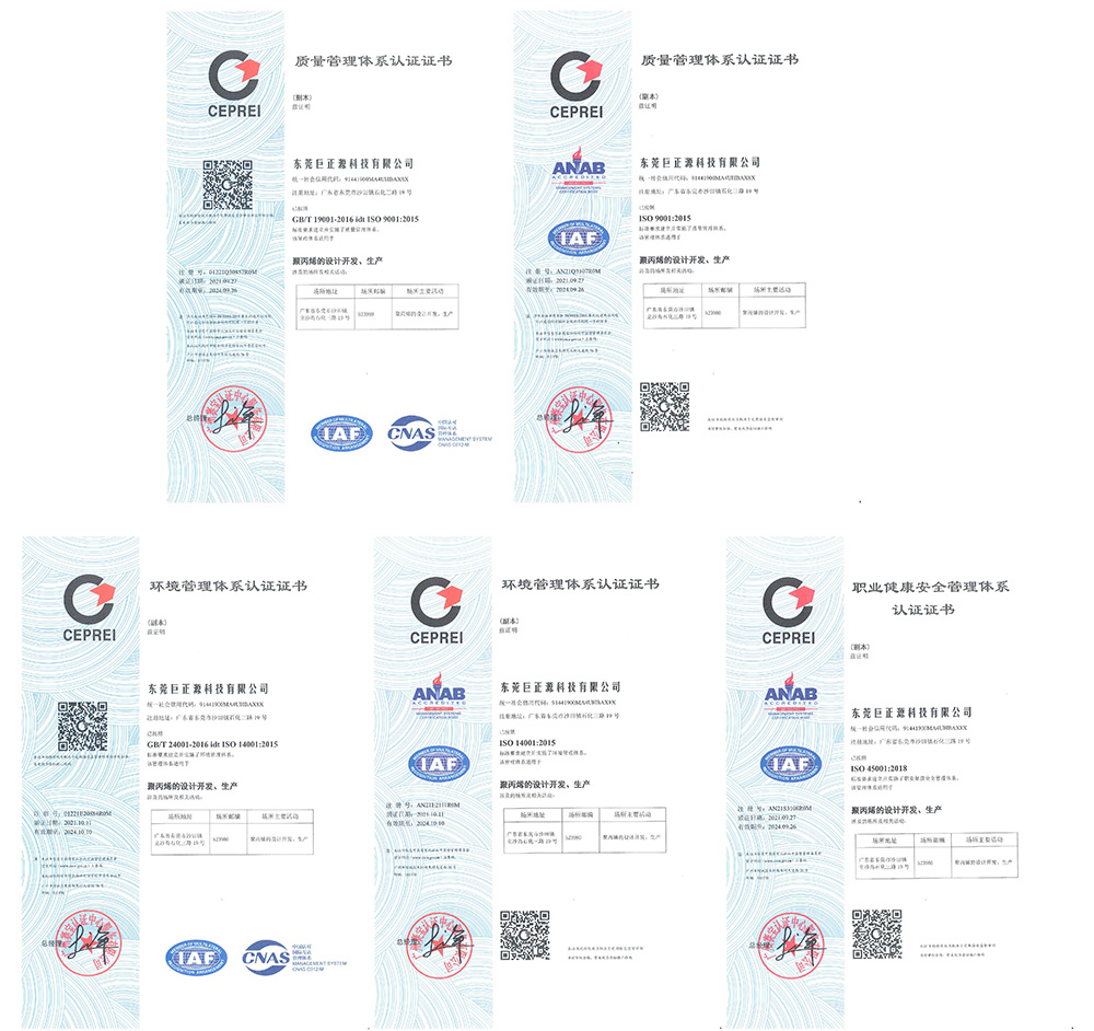 近日,巨正源科技公司成功获得ISO9001质量管理体系、ISO14001环境管理体系及ISO45001职业健康安全管理体系的认证证书,标志着公司在“标准化、规范化、精细化”管理方面迈上新台阶,为进一步提升企业管理水平、增强企业核心竞争力奠定坚实基础。