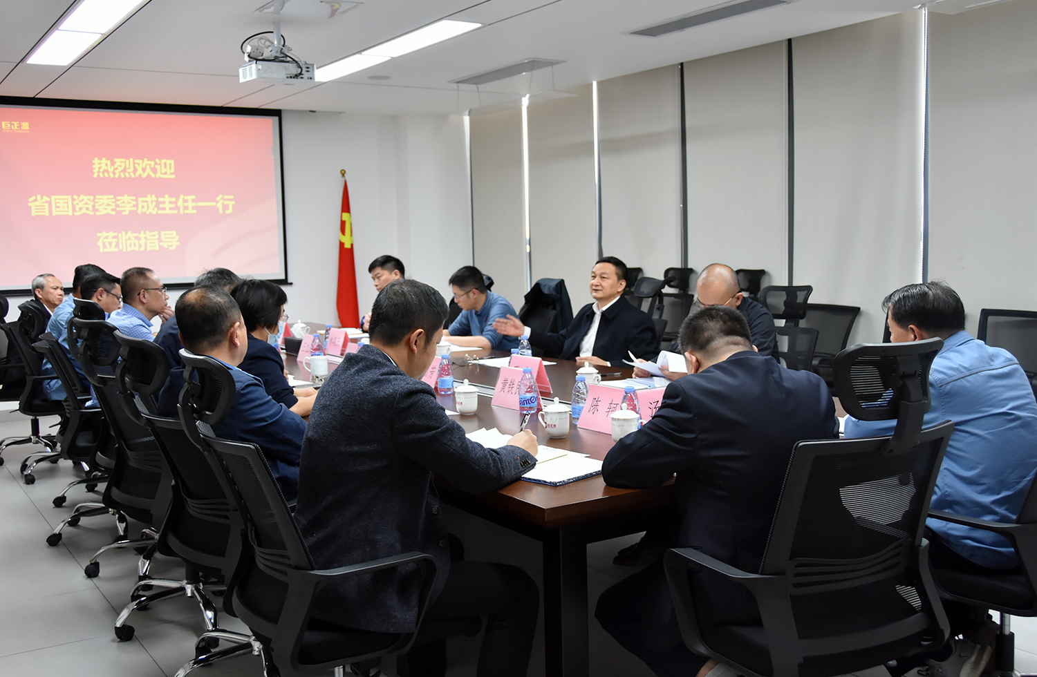 12月13日,广东省国资委党委副书记、主任李成带队到巨正源公司调研指导工作。