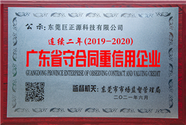 日前,广东省市场监督管理局公布了2020年度“广东省守合同重信用企业”公示名单,东莞巨正源科技有限公司连续二年(2019-2020年)荣获“广东省守合同重信用企业”荣誉称号。
