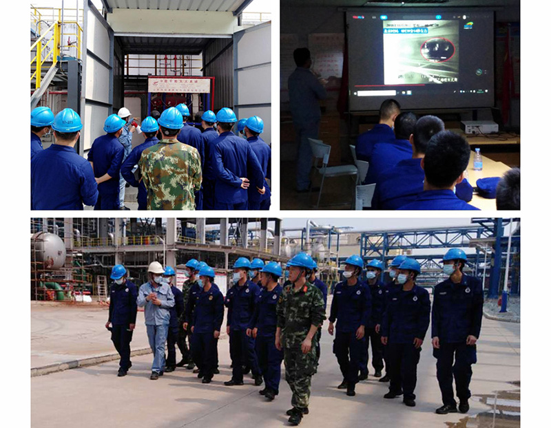 参训人员深入生产区观摩,熟悉巨正源科技公司厂区布置,了解各生产装置和消防设施设备,学习主要安全设备的操作规程并进行现场实操。双方就如何提升安全管理水平和应急操作能力,进行互动交流、分享经验。