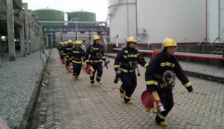 2017年6月21日,盛源石化组织开展了储罐泄漏着火综合应急演练,演练模拟T905储罐转罐过程中,罐边进料管线金属软管垫片爆裂,造成大量汽油泄漏,静电引燃着火。